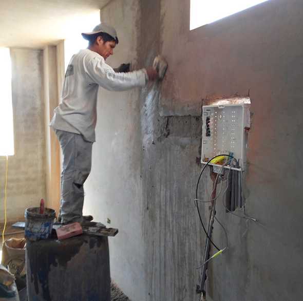 Well, today was a somewhat productive day. Abel and one other worker were at it, and I assisted. Abel finished the plumbing. His worker did a lot of tarrajeo re-do, over late addition outlets, low voltage panel pipes, water pipes, etc. I started running the tubes for the low voltage and then Abel took the last four tubes for regular electric. He and I did the kitchen and we even pulled all the wires! Our first wiring. So, we are out of lots of stuff again so off to the market in the morning, hopefully with a refreshed wife. we need 80 bags of cement (mostly for the floor), two bundles of electrical tubes and elbows, a pair of shower valves, some more plumbing parts, a couple of electrical fixtures, a half dozen power breakers, and 2 dozed stackable chairs (have to start thinking church soon!!). Hopefully, Abel and his worker will get some more cuts and tarrajeo done, fix that stupid sewer box thing in the front, maybe even pull wires for the bedroom while waiting for us. Hope to get back as soon as possible to keep the momentum. We also need to get a load of dirt delivered for the concrete mixing. Hard to find a place for it with the road construction … but such is life on the site! Lily woke up to see Abel off, she will get another nights sleep and hopefully feel refreshed in the morning.