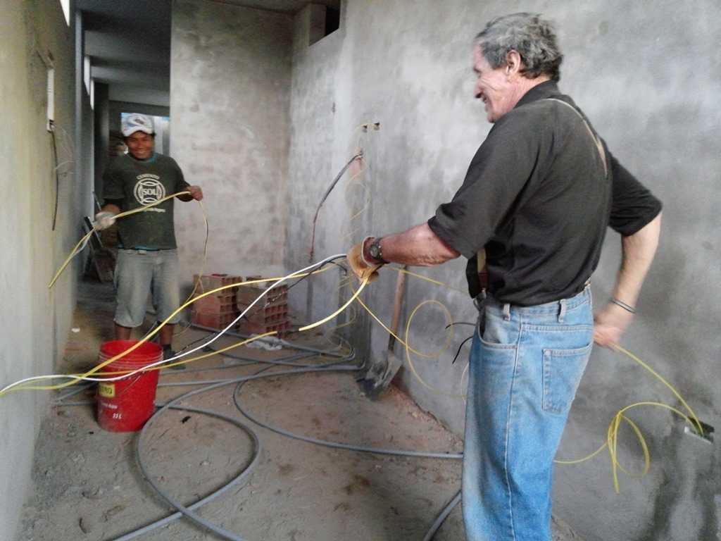 Interesting how they make so many cuts in the wall for the plumbing and electrical here. Since the walls are concrete and brick, this is not an easy or even clean process, and requires additional tarrajeo work when complete to cover the cuts. The picture on the right took a lot of work removing a lot of brick and tarrajeo to put in the low voltage box and tubes. Will take a lot of work to close it in again. Oh well, progress comes sometimes as two steps forward, one step back. Pastor Martin did call and wanted to come out tomorrow or Wednesday, but we discouraged him until next Monday, assuming we will at least have a floor by then. Purpose of Pastor Martin’s visit is primarily to initiate church services out here on Sunday which is very much what we would like as an accomplishment from this trip. Let’s hope for a productive week of construction.
