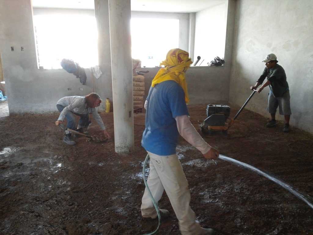 Finally, after every square inch of floor (first half of mission) is covered by painstaking detail, it is then worked over again with a dry cement only mix into every square inch, and then again with a liquid cement/water mixture for every square inch a third time! A painstaking process by hand, but half the mission is done. Tomorrow is God’s day of rest, and the workers deserve it as well. Back to work on Monday doing preparation of the other half of the mission, and pour and painstaking repeat of process on Tuesday. Hallelueah!! The preparation will include some rebar that we have, since it is a very large room in comparison to the many smaller rooms done today. That together with a lot of wire pulls yet to do, and the leveling process they go through, it will be a pretty full Monday.