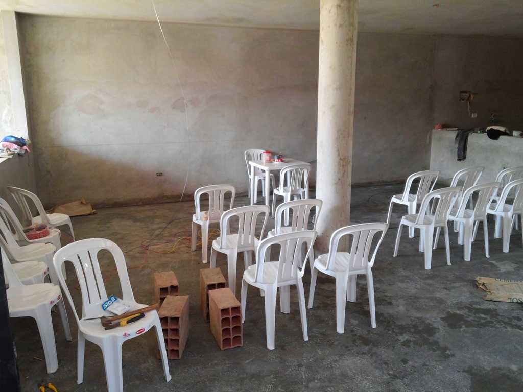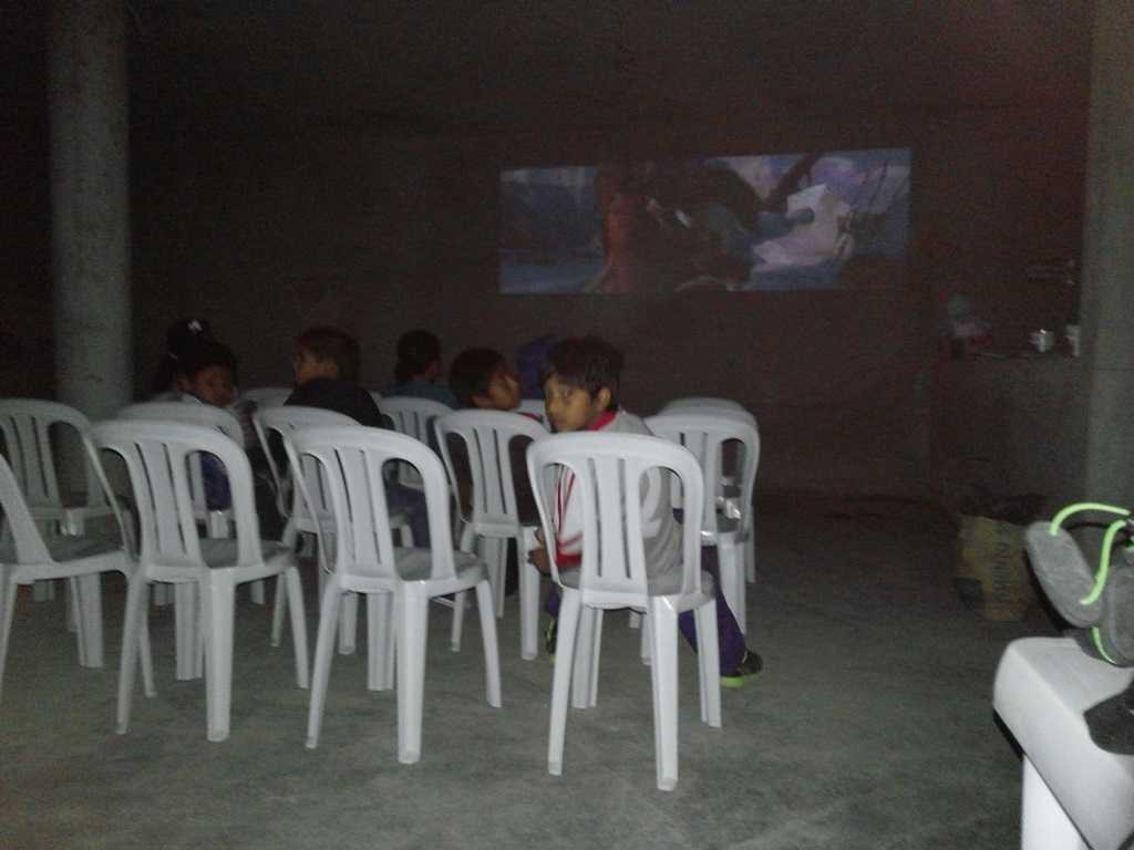 Saturday, Oct 19: Pretty full day. Abel stayed focused on the column pours to go with the brick walls; I continued to work on electrical lights; Lily did a lot of odd things as well. Nothing to really provide any photos on. We did stick to our promise to the kids in the neighborhood and had one last “Cine night”. This was our fifth time, but it was far different. No more dirt floor, no more construction boards for benches, real chairs, and a real concrete floor and even the Mission had power! This time we watched “Ice Age – Continental Drift”. Real floor, real chairs, new door and actual electricity in the mission – moving on up!! We did discover some problems with the electric tonight, maybe a bad connection or just some dirty power from the city, but I think I need an expert advise. Probably might be a good idea to get the whole thing grounded as well. We ran that line outside but have not yet installed the lighting rod. One more item to see if we can get done before leaving.