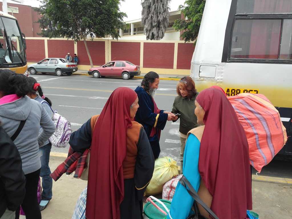 We ran a few errands while in town, wanted to get a few large water containers to pair up with water4life filters, for our next few recipients of the filters we have yet given. While in town we also got our bus tickets for Lima for next Thursday late afternoon, so we have 4 more nights at the mission and a few in Lima before we fly home. We met an interesting group of old testament focused bible based christians from Lima, dressed very biblically. We had to inquire as to who they were. Lily did the talking (she speaks the local tongue) while I took a few pictures. There was one gentleman, with flowing robe and beard (who reminded us both of Moses) and he was accompanied with about 4 women in habits, but they were obviously not nuns. There tract says their group name is AEMIMPU which stands for “Associatcio’n Evange’lica de la Misio’n Israelita del Nuevo Pacto Universal”. Apparently there are very Israel focused, 10 commandments focused but also new testament preaching (at least their tract is full of scriptures from both old and new testament). We exchanged tracts but would love to know more about these people, their doctrine, etc. Will study them more. Would love to ask Pastor Martin, who we will see shortly (which we forgot to do, maybe when we see him again on Wednesday next week).