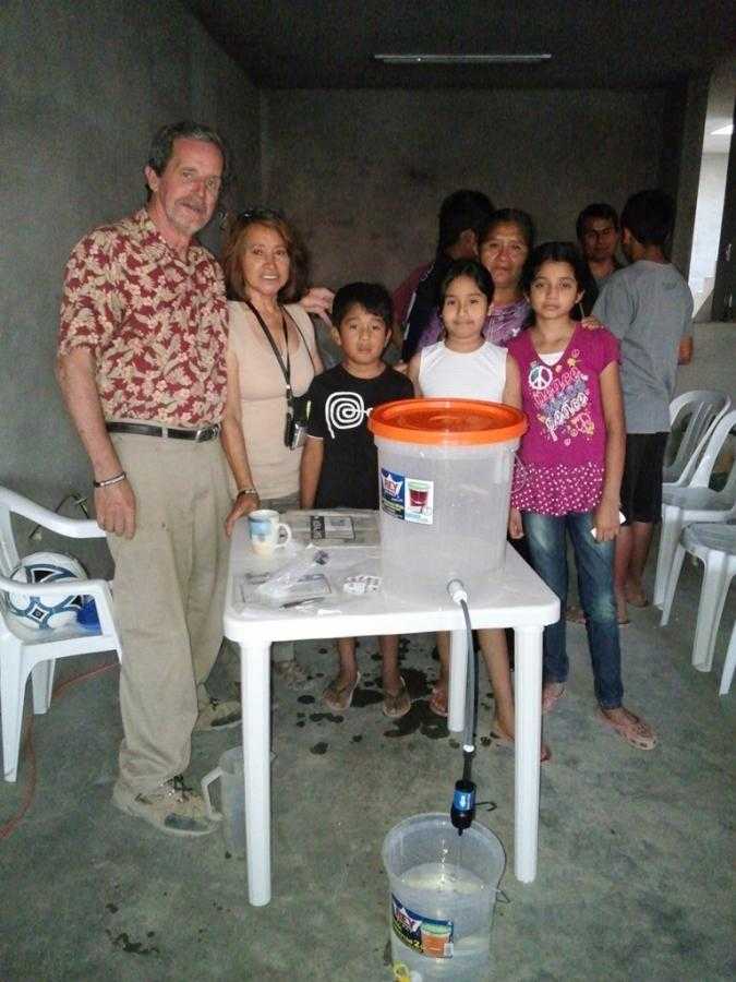 We demonstrated the water filter that we have given to a few families, and made a gift of our demonstration unit at the end of the meeting to a local farming family. We did ask people to write us a short paragraph about their family if they would like to receive such a filter in the future. We may have opened another door for donation help here, but the community certainly needs it. A local family of eight, the Vizarreta’s, that boils water daily for drinking, will no longer have to do that because of the filter that our mission provided at the end of the service. Thank you ‘Branch church’ of San Diego for your donations to make this possible. Two of the family members, the father and grandfather, were working when this picture was taken, as were two of the older kids who were at school. The family is a farming family and this water filter and bucket will go a long way to reduce heating fuel and bottled water costs, as well as giving them much more water to drink which is always healthy.