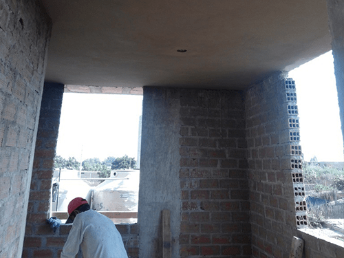 Checked out the 2nd and 3rd floor and a great amount of progress on tarrajeo had been made in our absense. I told Lily we need to leave more often! Guess it just seems greater when you aren’t watching them daily, sort of the old axiom ‘a watched pot never boils’. Anyway, most of the 2nd floor has it’s ceiling tarrajeo complete, still have to do the east end where the men’s dormitory is. They were doing tarejeo on the external balcony ceiling on the 2nd floor when we arrived.The 3rd floor has had a great amount of work done, most of the walls are complete, a lot more electrical cuts are made on the large area parapet as well which will probably be the last area tarrajeo is applied on that floor. Charlie, Abel’s brother, was cutting in for the electrical breaker box on the 3rd floor when we arrived. Now that the water tanks are moved up to their own location on the roof, and off the third floor (picture on right), the full size and openness of this floor for events and meetings can be better appreciated.