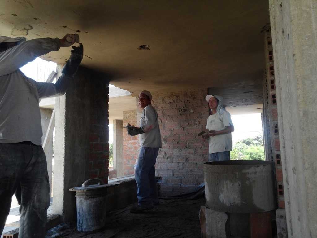 This leaves only the men’s dormitory and respective bathroom to finish the terajeo process on the ceilings of the 2nd floor. Then it’s time to do the walls. Making progress. While all this tarrajeo work is going on upstairs, there is a support element from the downstairs that has been constant the whole while. There has always been a team of guys doing a rope and pully system taking fine sand used in the process to the upper floors for mixing with the cement.