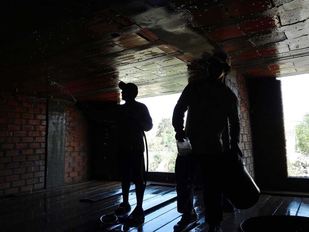Friday, April 3 – A rather productive day, construction wise. Completely removed all the wood frames from the cistern, showing a completed succcess pour. Tarrajeo within the new underground water tank got underway to make the walls very smooth and clean.