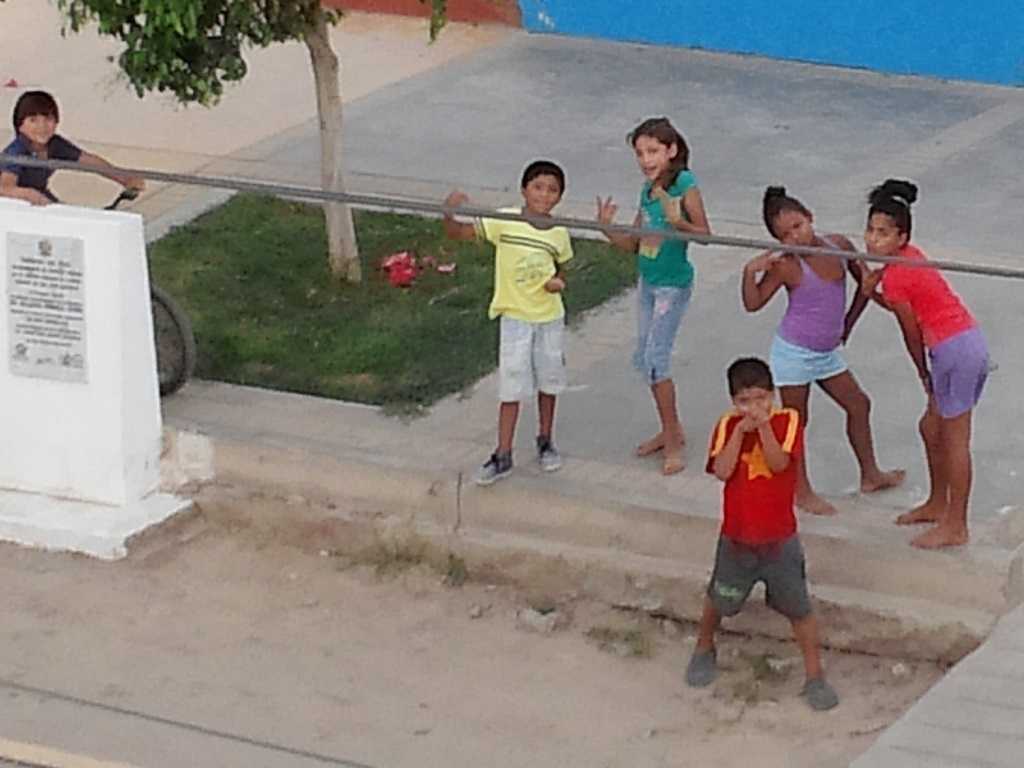 We were considering going to Pisco on a pastor’s invite to his church for Easter Sunday tomorrow, but with this country so full of “C & E” (Christmas & Easter only) church goers, the collectivo’s jack up their ride into town, the buses will be crowded, the streets crowded, the churches crowded, etc. We have decided to take a rain check for another week and avoid the craziness of fighting the crowds. We have tried it a few years in a row now and it’s not fun. We will have our own service here at the Mission or we might venture into Ica, but lets see as the days progress. In the interim, one more day of work tomorrow and two movie nights, youth and adult. We are going to show a Passion play for both, animated for the children and Mel Gibson’s movie for the adults. Tonight we have the kids.Kids showed up a little early and a little late … one thing we need to teach them is that it is disruptive to be coming in on a movie after it begins … but kids be kids. Didn’t have our regular larger numbers this time, perhaps since many families might have gone to Ica for a Good Friday parade or the like.