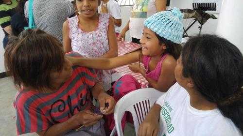 19 August, Friday – Before our daily knitting session, the youth come by for early hugs and goodbyes knowing this is the Hearts and Hands last day at the Mission. They definitely don’t want them to leave. They then went home and got out of their school uniforms and many returned for the last day of training.