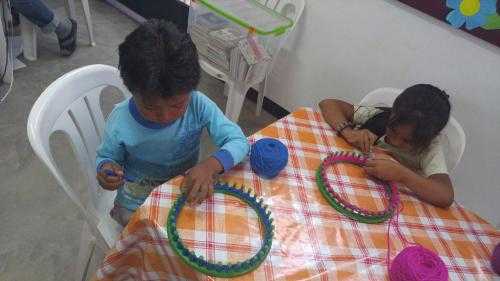 We had a great showing for the crocheting for youth today. Personally I would thnk we could easily have a second day for the youth and they would make the most of it as there not a lot of recreational activities in this town and the enthusiasm for the hobby is pretty high. Luciana showed great interest and was quite active in leading and teaching some new young boys how to do their first loom. (I told her that three days of this and she would have to wear one of the official LAMA mission leader T-shirts that I would be forced to give her! She liked that!!