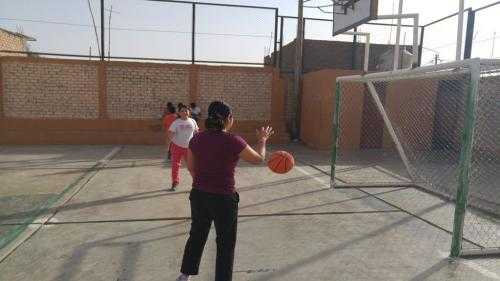 Later in the day we had mostly three things to accomplish. Correcting the cross lights, capping the well next door so no accidents occur and getting the third floor framing ready for cloth cover. As to the well cap, that was handled very early in the morning. When Lily went to town, I couldn’t resist the ‘call of wet cement’ and in actuallity, hopefully we did save a kids life by capping that deep hole!Lily went with the worker to pay for the fabric and to get it stitched to size for later pickup. While gone, I caught a pic of Yareni trying to get her daughter into basketball, one of the balls Lily and I bought a few weeks ago for the mission. The city just recently added hoop’s to the courtyard, to support some traveling basketball camp that went through. Maybe we can get some more interest going at the mission for this sport.